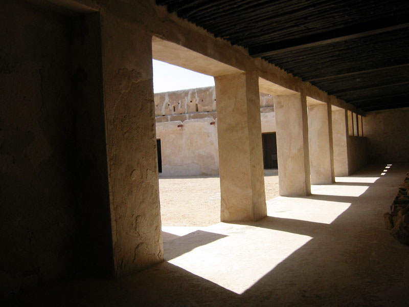 We were under the impression that Al Zubara was an old fort, near a much older city, that had been built to defend Qatar from the British, and later the Bahrainis. After a few wrong turns, and a stop to chat with a camel herder, we arrived at the fort of Al Zubara. The fort commands a long, flat beachline at the north-west tip of Qatar. Climbing its ramparts, and looking through the gun holes, I immagined the enemy storming the beachhead, swarming towards the fort. Inside some of the rooms are a crude sort of museum. A few coins, a few broken pots, a few pictures of the fort being built...