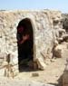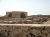 On to the ancient city nearby. We drive a short distance towards a group of tents. This is the old Al Zubara, home once to a city of 15,000 prosperous traders, pearlers, and fishermen. We drive, quite literally, over the city wall to get to the tents. There we meet the director of the dig, who gives us a tour. The city occupied a small peninsula here, just west of the fort. Protected by an encircling wall featuring 21 towers, the city is now crumbled and largely covered by the sand. Houses, stores, stalls, are all now but piles of rocks and stones. What has been excevated is now haphazardly put back together with new stones and cement.